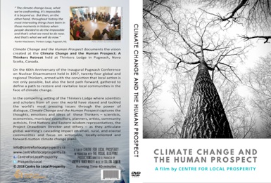 To purchase a copy of Climate Change and the Human Prospect for a group screening please contact info@centreforlocalprosperity.ca